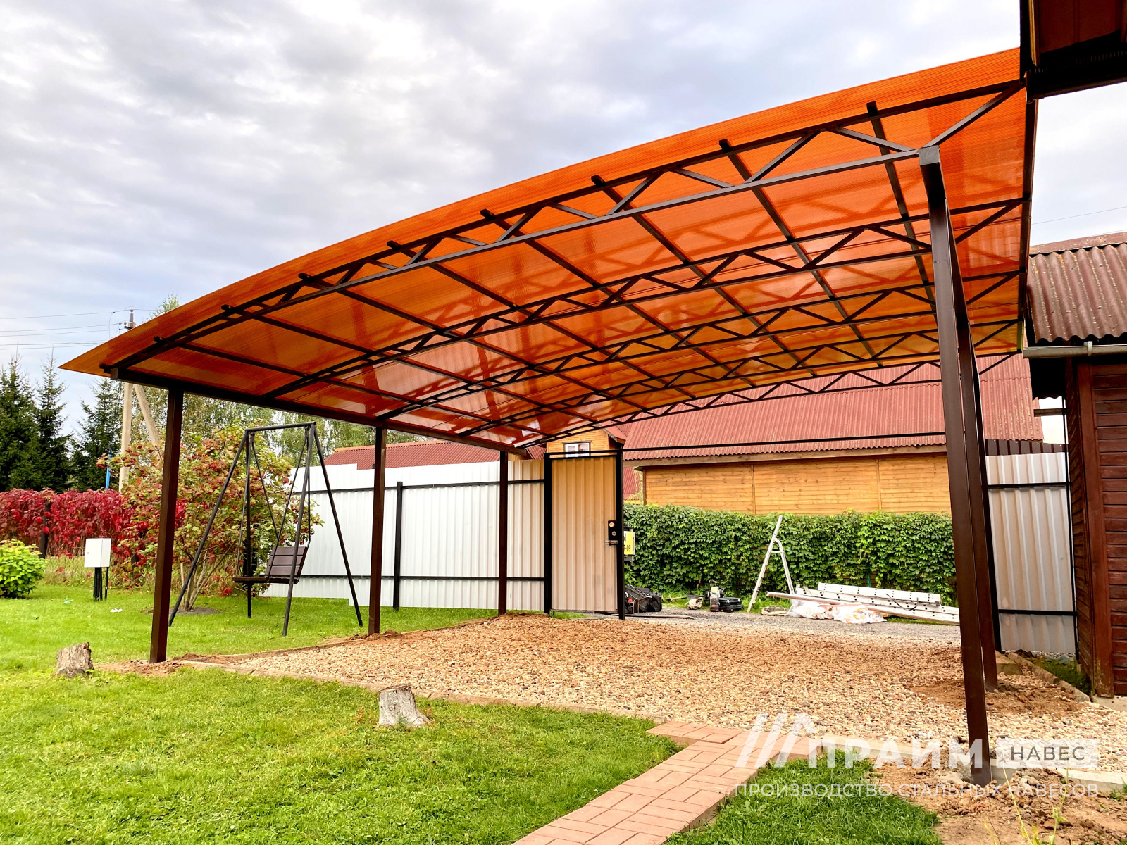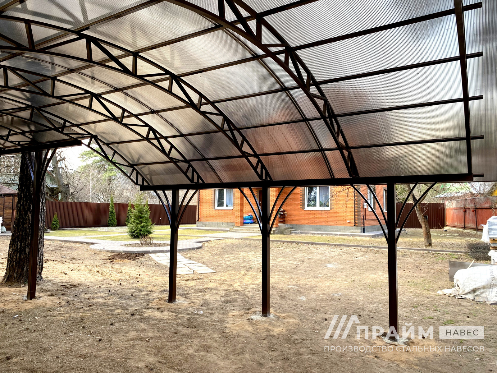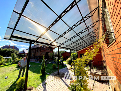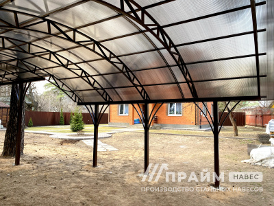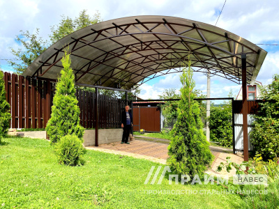 Портфолио «Прайм-навес» – наглядный пример качества изготовленных конструкций. Каждая фотография – это индивидуальный заказ, выполненный компанией. Этот раздел сайта поможет подобрать навесы из поликарбоната для Москвы или Московской области по внешнему виду, особенностям конфигурации.