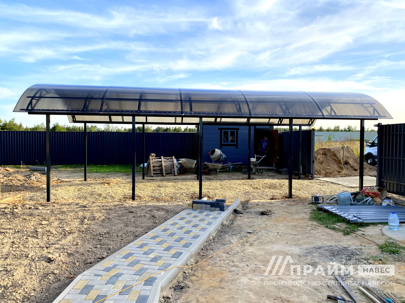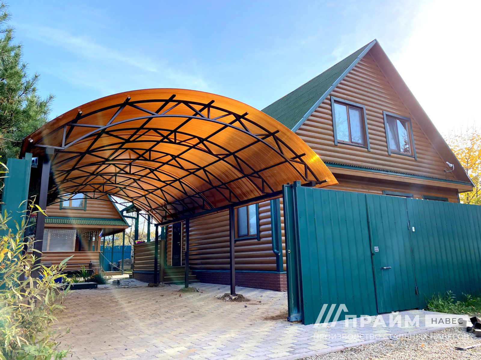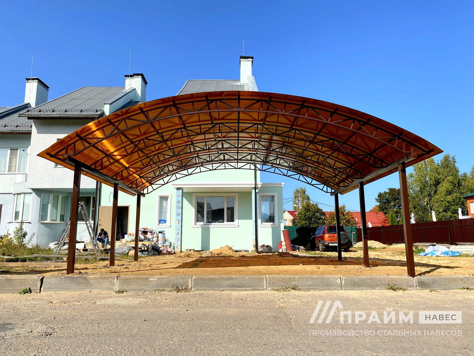 Портфолио «Прайм-навес» – наглядный пример качества изготовленных конструкций. Каждая фотография – это индивидуальный заказ, выполненный компанией. Этот раздел сайта поможет подобрать навесы из поликарбоната для Москвы или Московской области по внешнему виду, особенностям конфигурации.