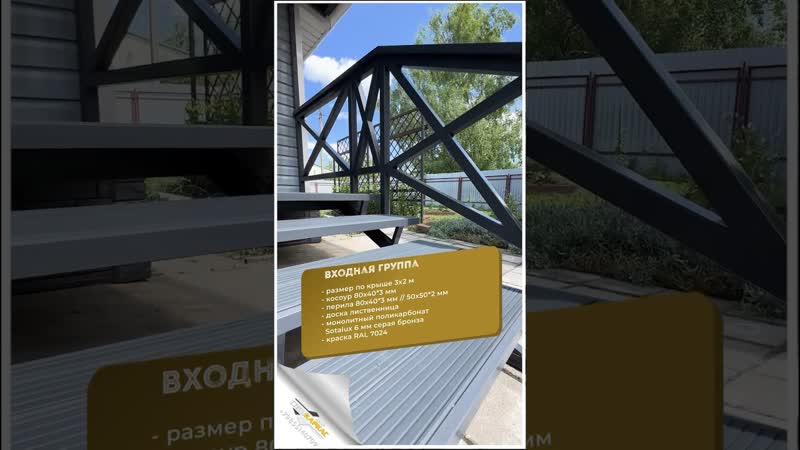 Задача компании – сделать надежный, функциональный и долговечный навес из поликарбоната по требованиям заказчика. Для этого разработана система изготовления, предусматривающая контроль материалов, каждого элемента конструкции, соблюдения технологии монтажа. Все это показано в видеоматериалах.
